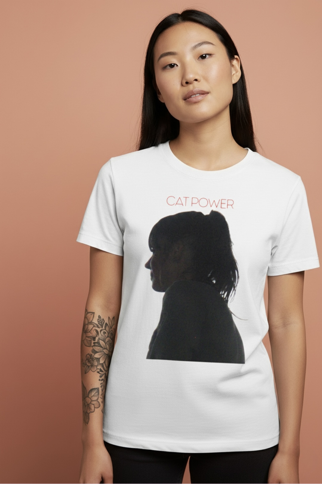 Melancolia suave em forma de música. Essa camiseta traduz a força silenciosa e magnética de Cat Power.