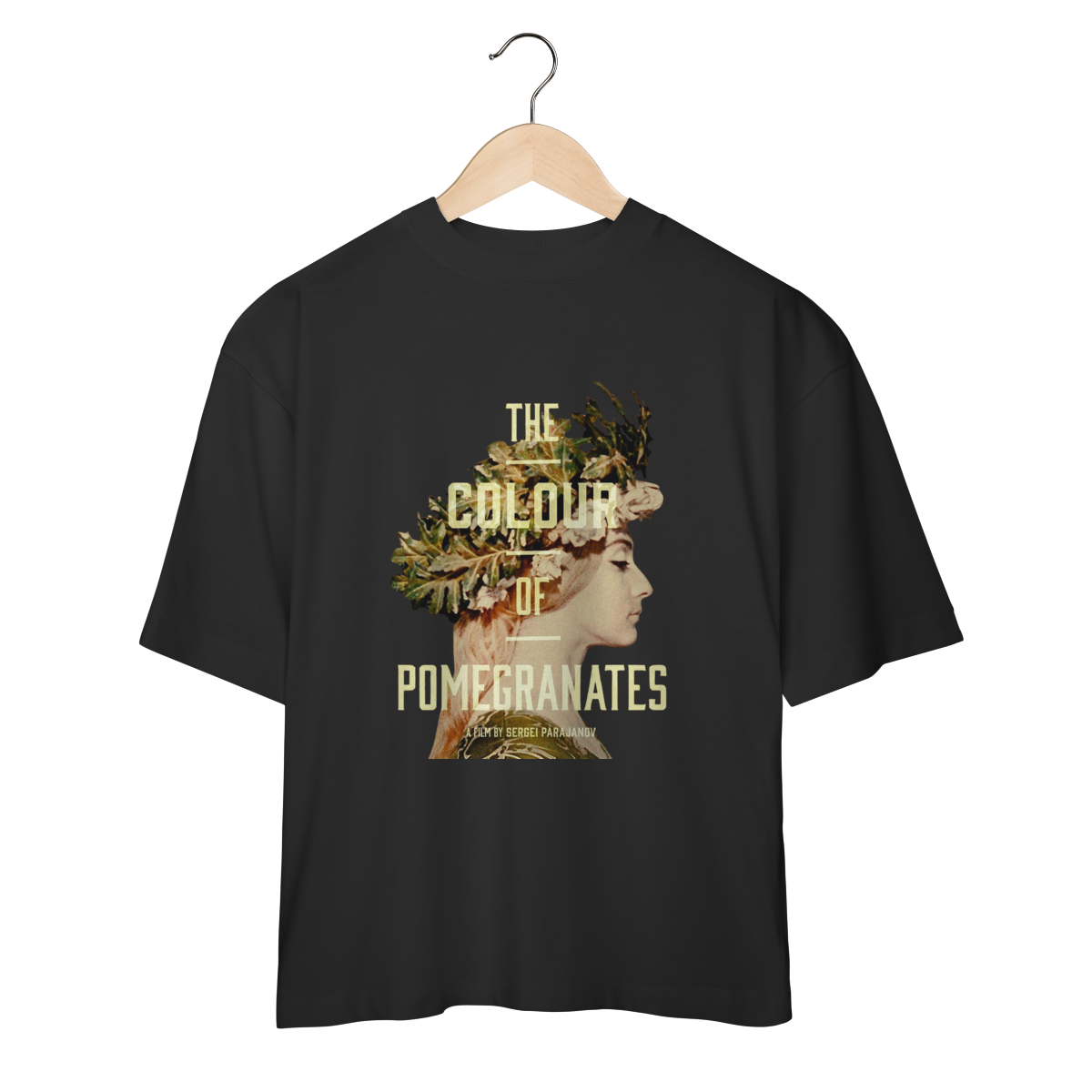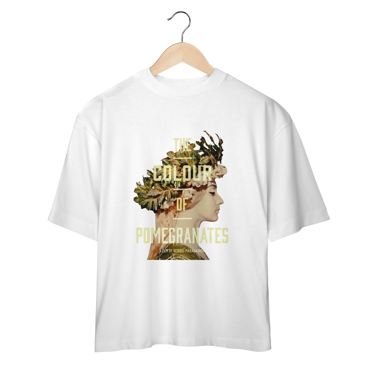 Camiseta oversized do clássico filme A Cor da Romã, homenageando a poesia visual e a estética única da obra de Sergei Parajanov.
