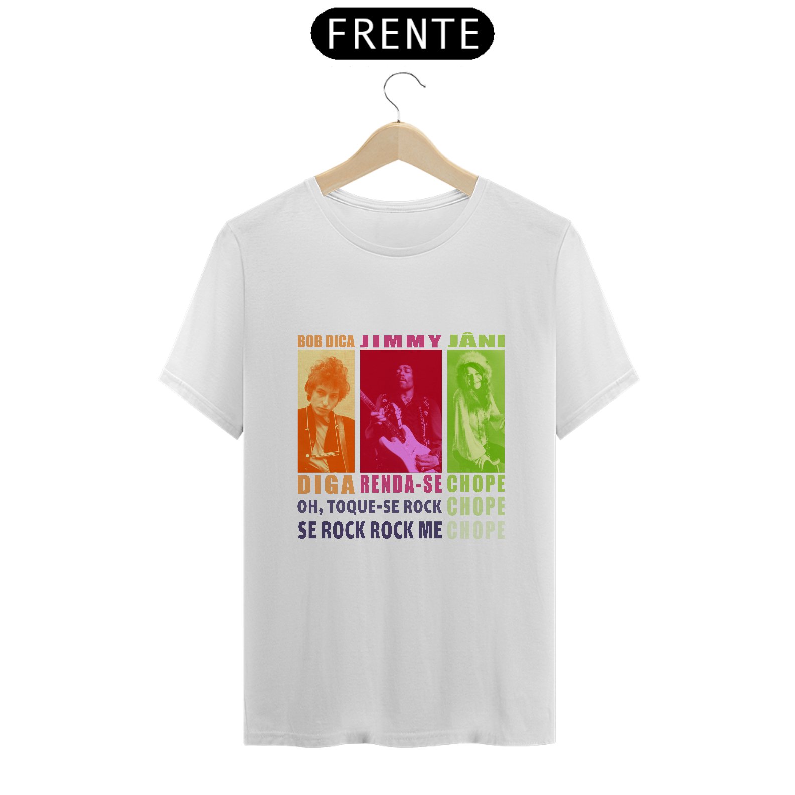 A caamiseta Tom Zé – Jimmy Renda-se traduz a irreverência e a crítica social da música que quebrou barreiras no Brasil. A arte evoca a força da canção e a ousadia do próprio Tom Zé. Cores vibrantes e formas caóticas, assim como o som desconstruído de sua música, celebram o espírito de resistência e de entrega à criatividade sem limites. Para quem tem a coragem de se render à arte e ao confronto com a realidade.